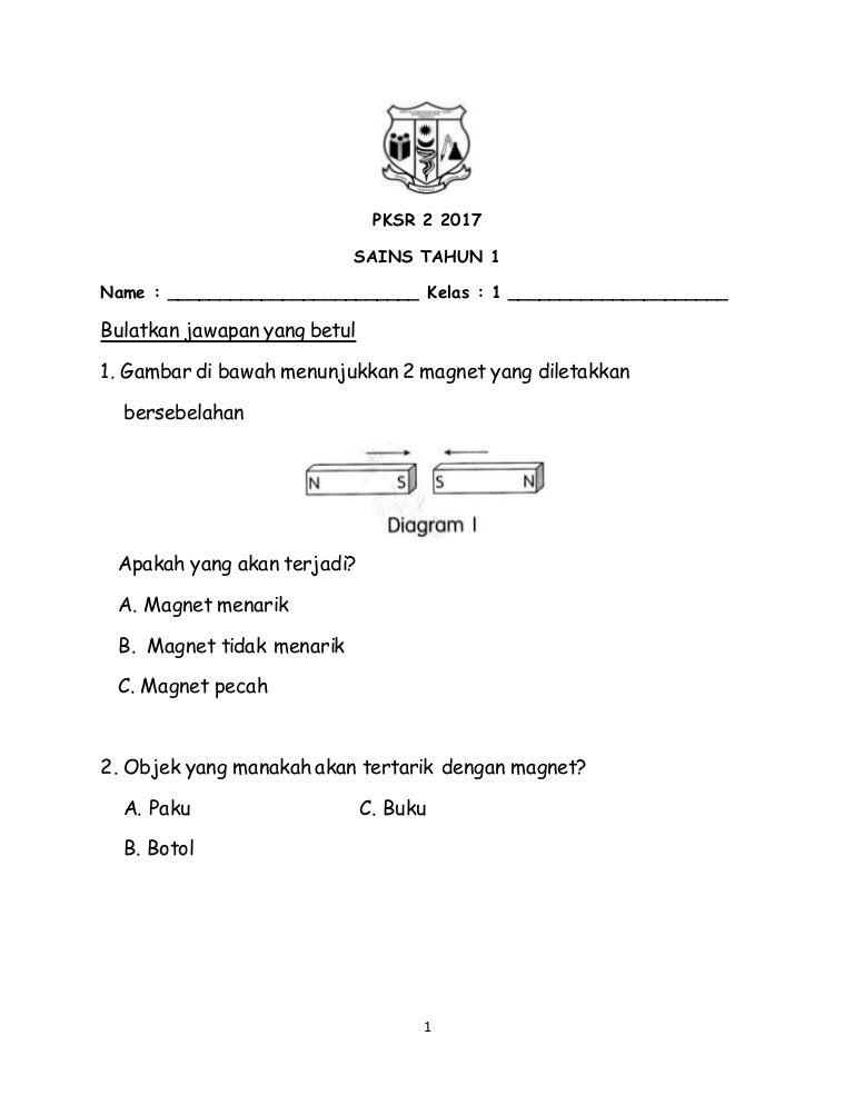 Manakala kertas 2 adalah berbentuk subjektif dengan selain itu, disini juga dikumpulkan semua koleksi ujian peperiksaan bagi bulan mac edisi tahun 2017 untuk tahun 1 hingga tahun 6 juga. Kertas peperiksaan ini adalah sains untuk murid darjah 1 mengikut kurikulum standard sekolah rendah (kssr). Soalan, nota, bahan rujukan penting semua subjek. Ujian akhir tahun sains tahun 1 kssr semakan. Muat turun soalan latihan sains tahun 1 yang terbaik khas untuk para murid cetakkan! Soalan peperiksaan pertengahan tahun sains tahun 4 2015. Berikut dikongsikan contoh set soalan peperiksaan akhir tahun sains tahun 1 bagi mata pelajaran tahun 1. Soalan sains tahun 1 (awal tahun 2017). Dapatkan soalan latih tubi sains di sini. Di bawah adalah koleksi soalan yang dihimpunkan daripada pelbagai sumber mengikut subjek dan tahun. Ini kerana soalan spm tahun semasa akan diambil dari soalan spm 5 tahun ke belakang. Murid perlu screenshot / printscreen sebagai evidens telah menyelesaikan. Pentaksiran awal tahun sains tahun 1/2017 disediakan oleh :