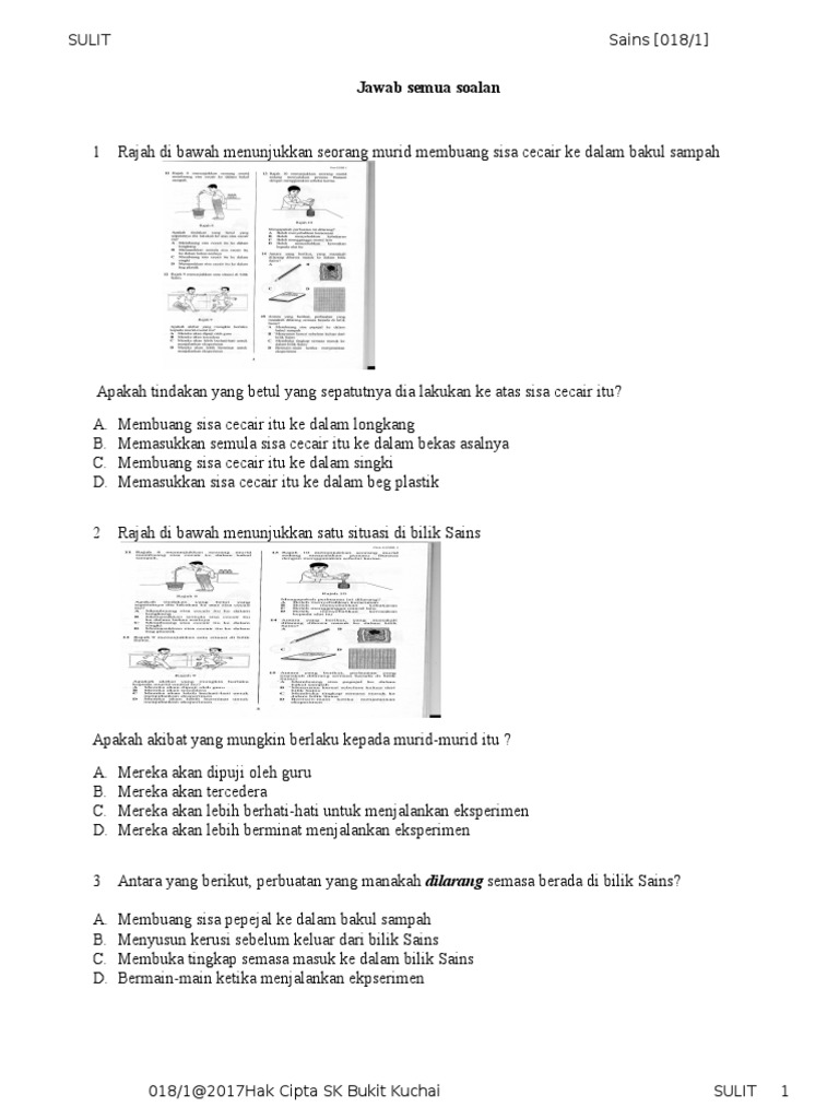 Suaikan organ dengan jenis deria yang terlibat semasa. Soalan peperiksaan pertengahan tahun sains tahun 4 2015. 0 ratings0% found this document useful (0 votes). Dapatkan soalan latih tubi sains di sini. Home soalan tahun 1 soalan latih tubi sains tahun 1. Dskp kssr semakan 2017 sains tahun 2 sjkc scribd com. Soalan latih tubi sains ini adalah himpunan soalan sains tahun 1 untuk panduan dan rujukan para ibu bapa dan guru. Jika gagal mencapai sasaran, murid perlu jawab semula sehingga tercapai 3. Murid menjawab set soalan sehingga mendapat markah 40 dan ke atas 2. Jawapan sains kertas 1 upsr 2017, sains upsr 2017, sc upsr ,answer science upsr 2017 , soalan scienceupsr , upsr 2017 science , science upsr. Tahun 4 5 6 eidsb com my. Kuiz sains tahun 1 kssr. Sulit 018 1 kertas 1 soalan peperiksaan pertengahan tahun 2017 post written by admin at february 12, 2017 6:22 pm.